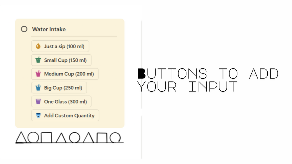- Pre-set hydration buttons (from 100ml to 300ml & custom)
